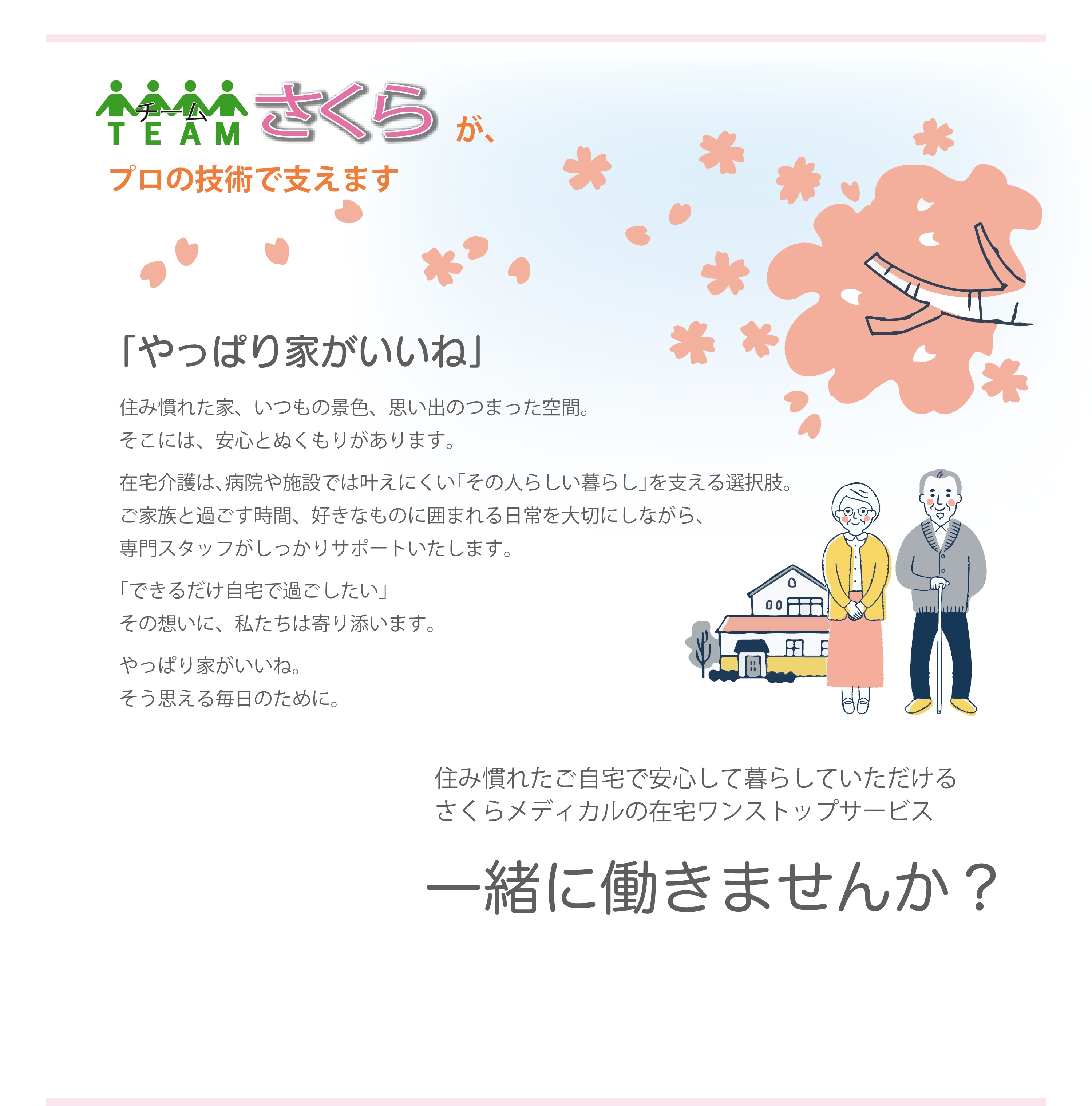 チームさくらが住み慣れたご自宅での生活をワンストップでサポートいたします